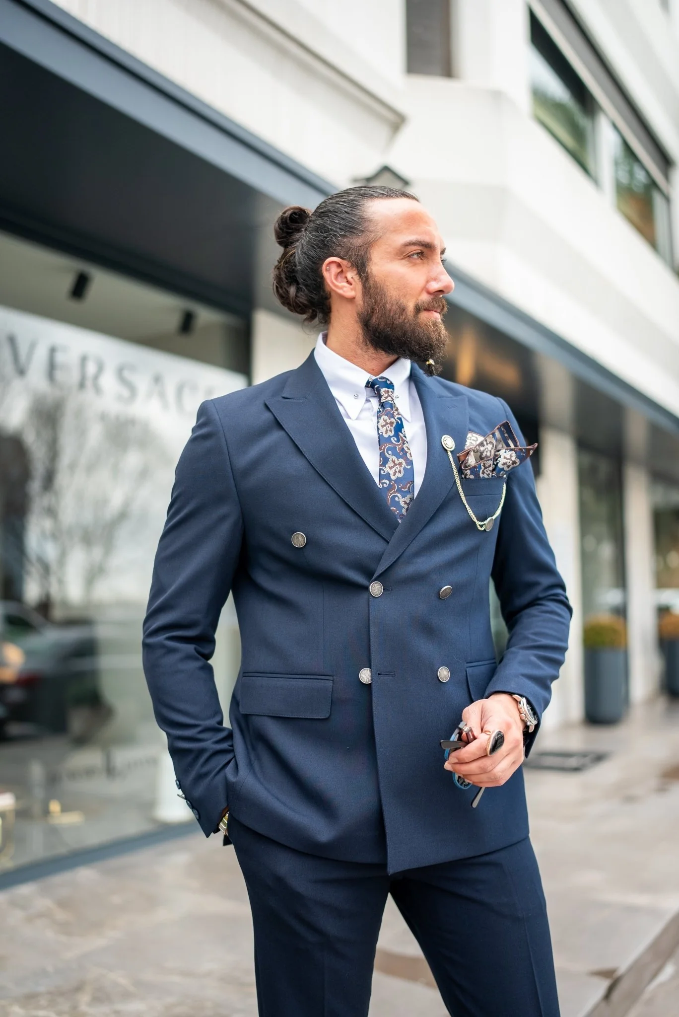 Step into undeniable dapper style with our Double Breasted Navy Blue Suit, curated for attention-grabbing elegance and lasting impression. Crafted with impeccable taste and effortless elegance, stand out effortlessly with timeless sophistication and unmatched charisma.