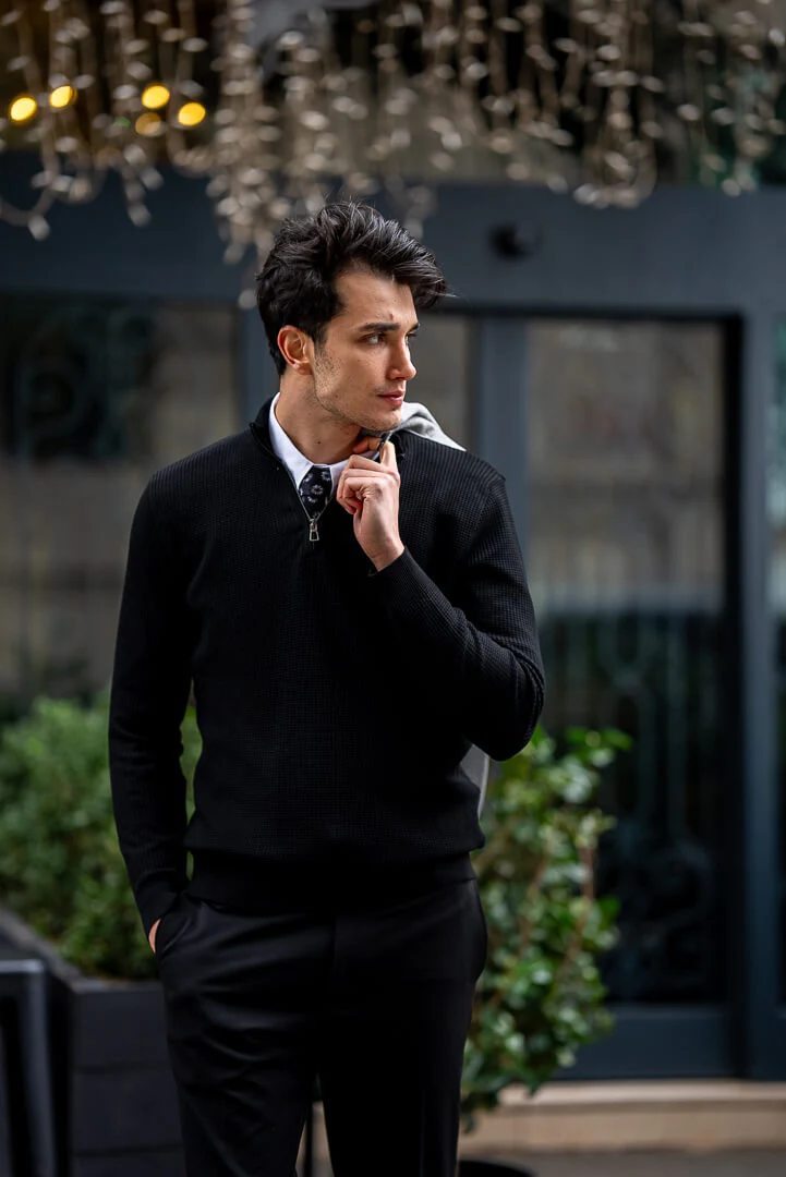 Classic Black Zipper Collar Men's Knitwear