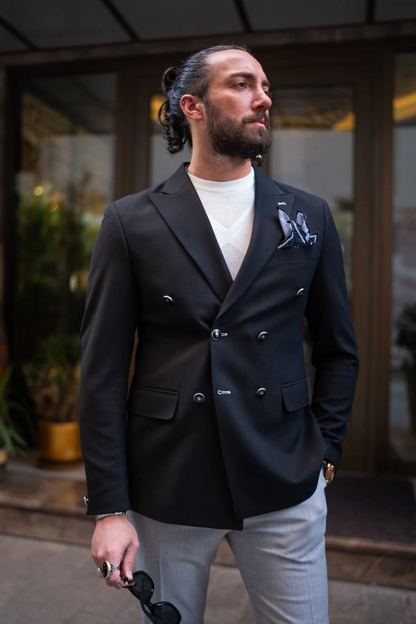Obsidian Elegance Double-Breasted Blazer