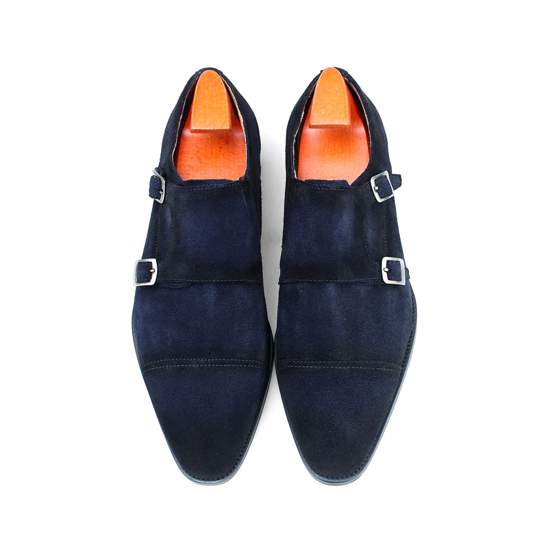Handcrafted Navy Nubuck Double Monk Strap Shoes