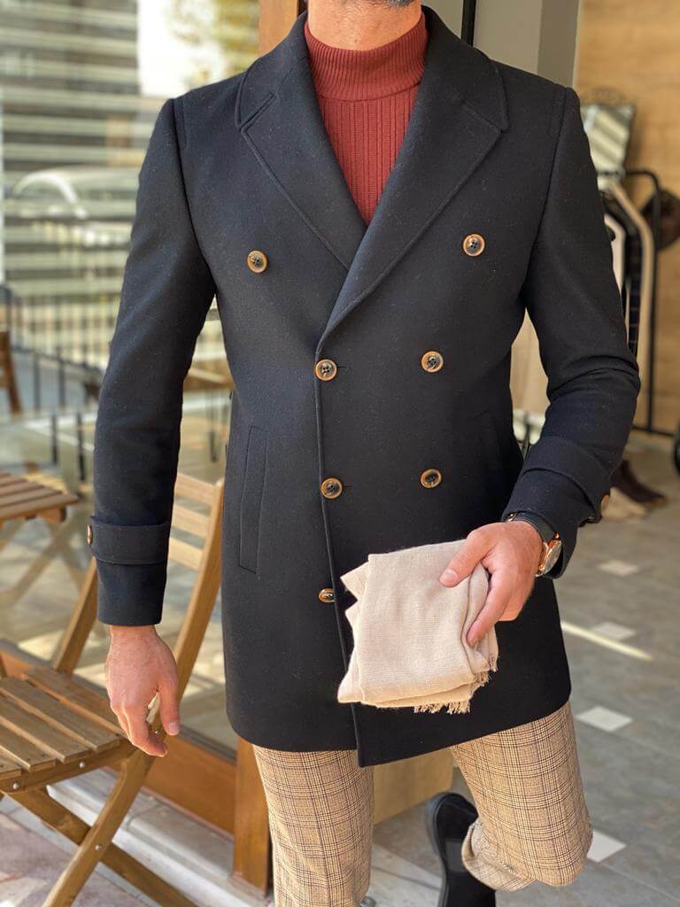 This slim-fit double-breasted black wool coat is a special arrival for the winter coats 21/22 season here at HolloMen.