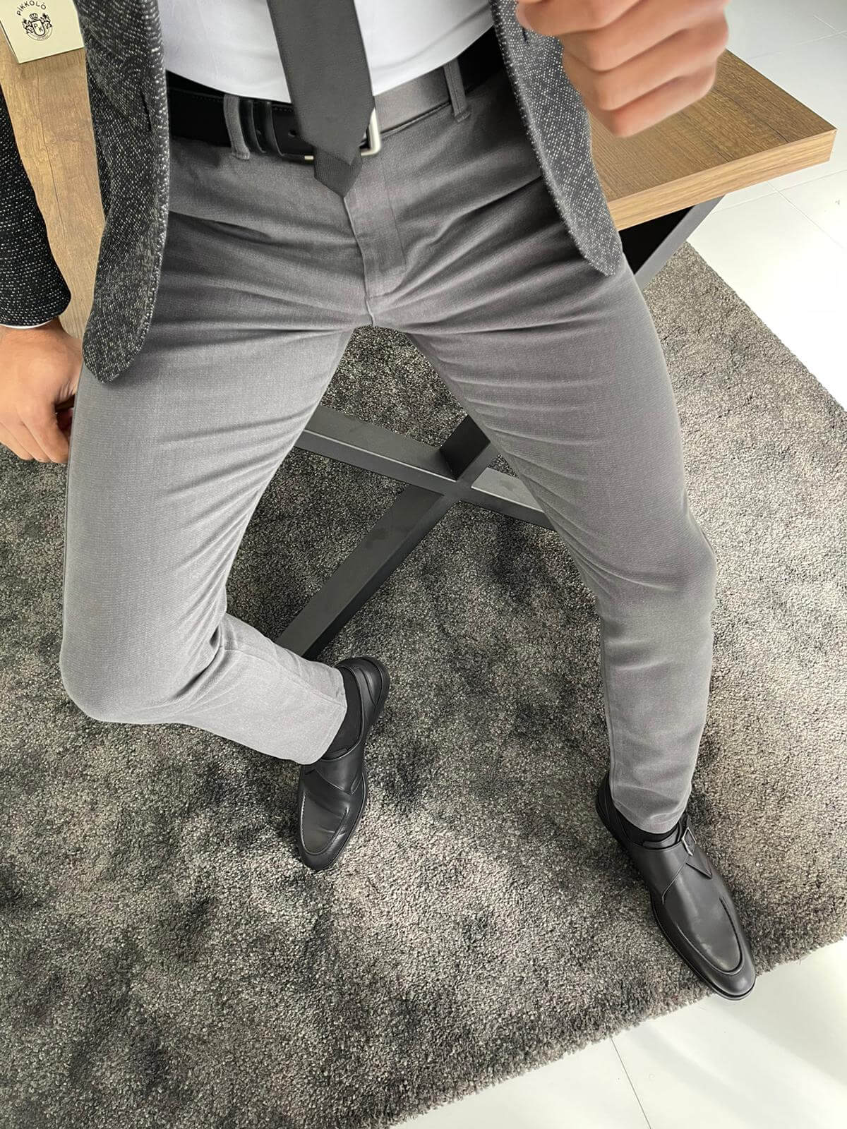 Part of the Fall-Winter HolloMen Collection, these gray slim fit trousers are designed for both formal and smart casual looks.