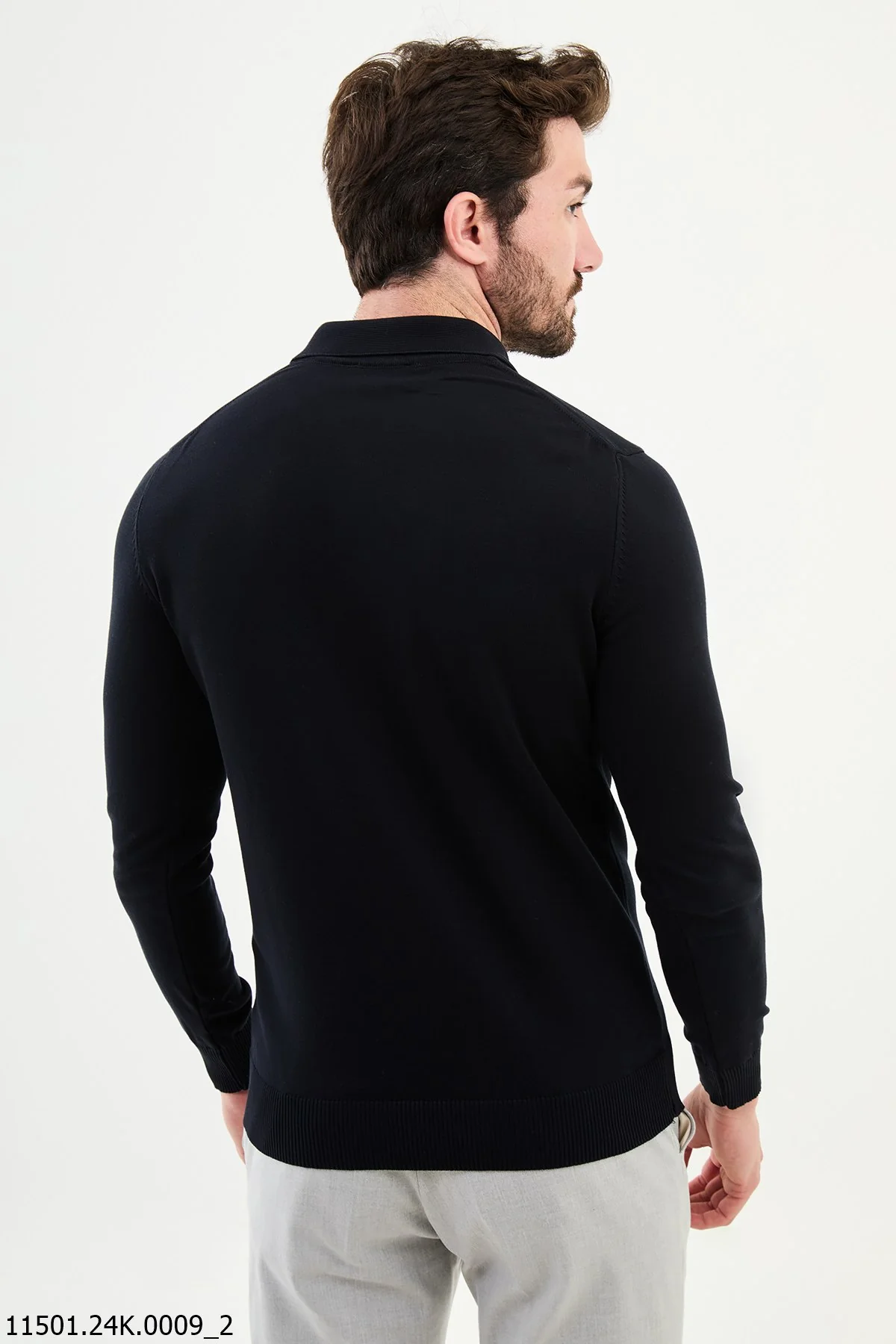 HolloMen Navy Blue Long-Sleeve Polo Sweater.