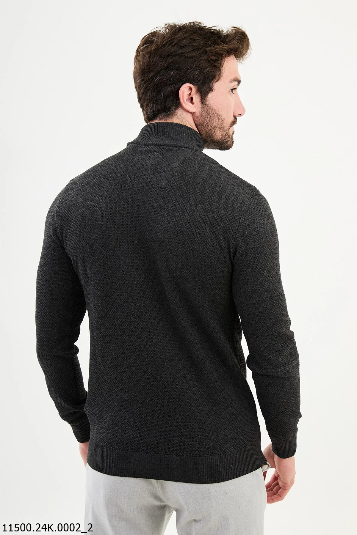 HolloMen Charcoal Gray Textured Turtleneck Sweater.