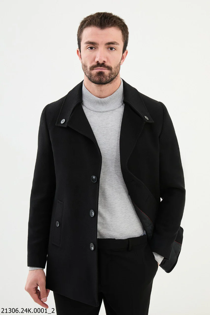 This stylish black winter coat combines a sleek design with practical functionality, perfect for fall and winter. This coat is made from a premium blend of 55% cotton and 45% polyester, ensuring comfort, warmth, and durability. The asymmetrical button closure adds a unique flair to the coat, setting it apart from traditional designs. It features deep pockets for convenience and a tailored fit, making it an excellent choice for casual and formal occasions.