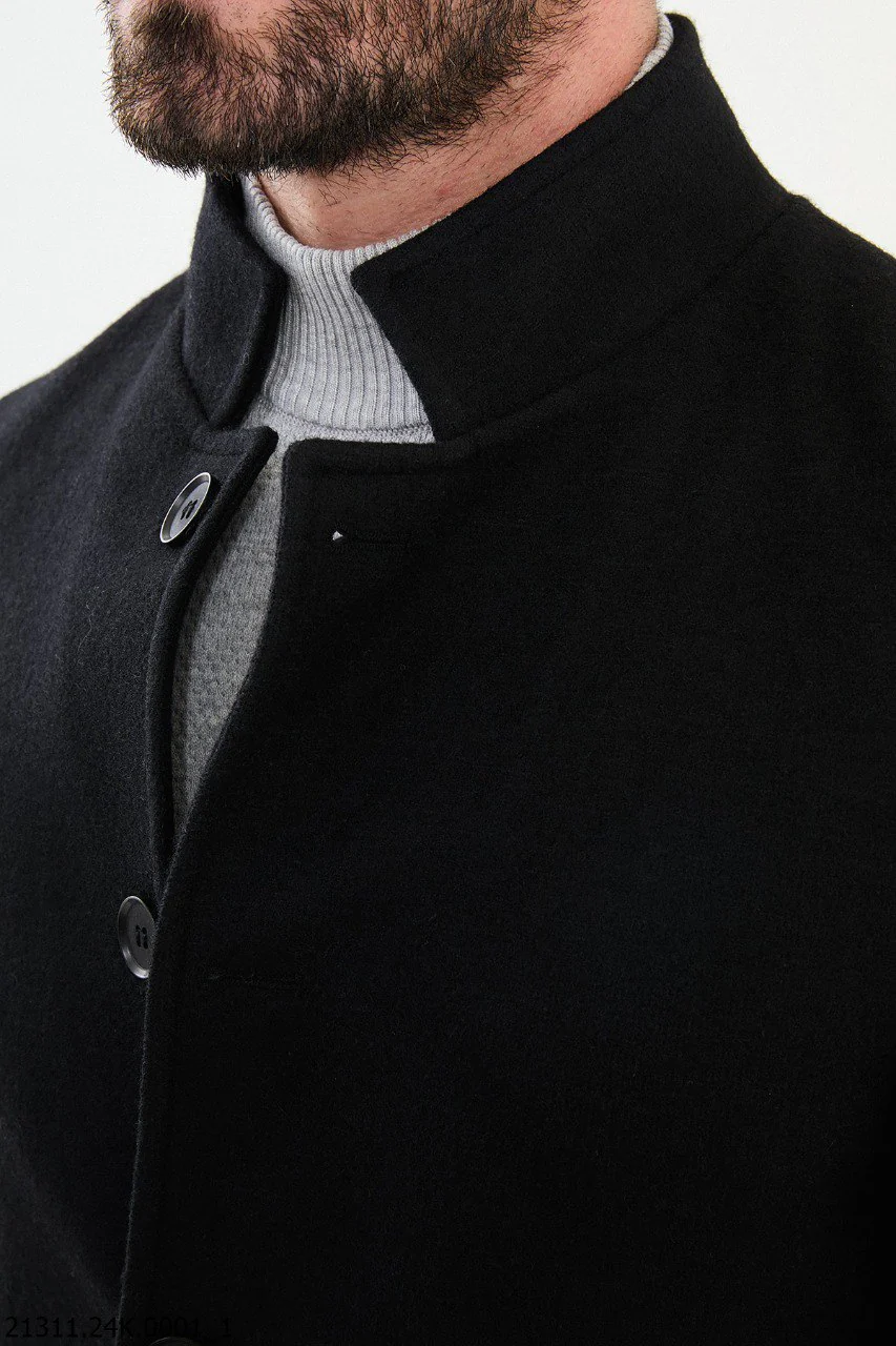 This classic black stand collar coat exudes timeless elegance with a modern edge, made from a comfortable blend of 55% cotton and 45% polyester for durability and warmth. Tailored for the fall-winter season, it features a sleek, minimalist button-down front, perfect for both casual and formal settings. The coatâs structured silhouette enhances any outfit, while its versatile black color makes it a staple piece that complements various styles. Ideal for colder weather, this coat offers a refined look with practical comfort, elevating any gentleman's seasonal wardrobe.
