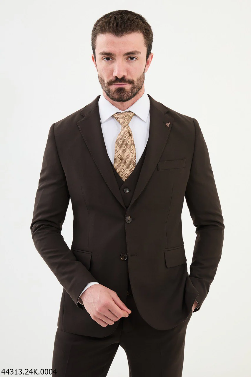 The rich brown tone exudes sophistication, perfect for weddings, business meetings, or seasonal festivities. The tailored fit enhances your silhouette, while the modern notched lapels and three-button vest add a touch of contemporary style. Designed for elegance, this suit ensures you’re the epitome of class, whatever the occasion.