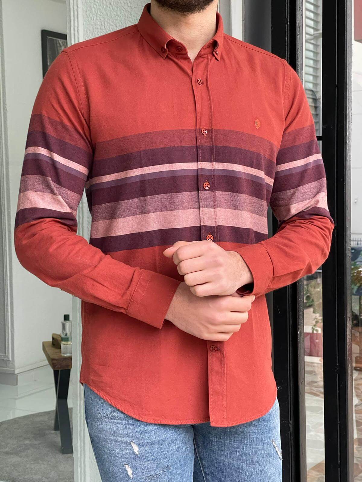 Wash in degree water separate from colored clothes. Be careful not to iron the buttons of the shirt.