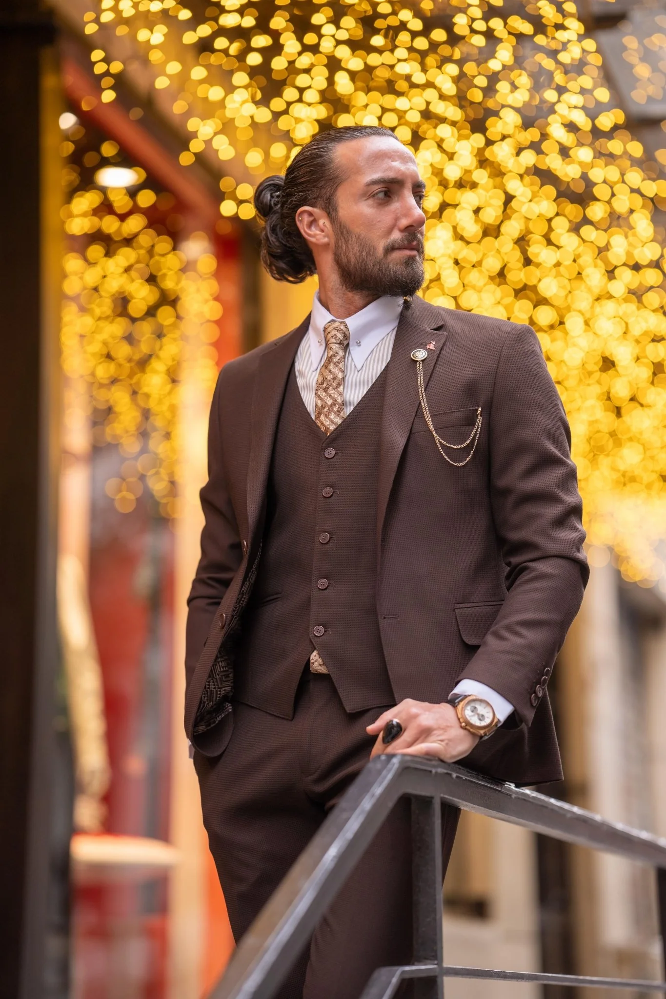 Embrace sophistication and charm with our Self-Patterned Brown Suit, crafted for those who want to leave a lasting impression. With impeccable taste and effortless elegance, this suit is the epitome of undeniable dapper style, ensuring you stand out with unmatched charisma and impeccable style.