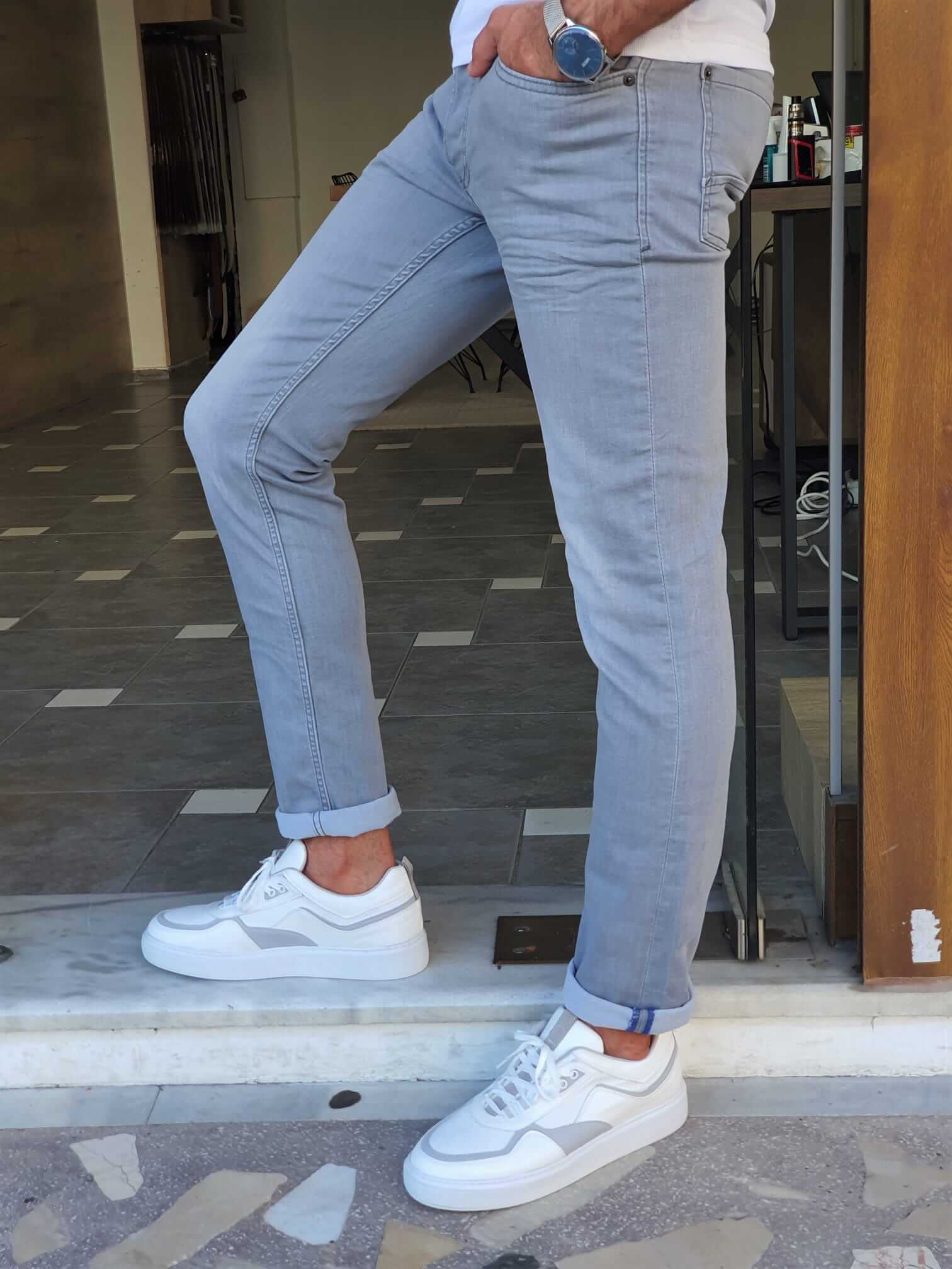 A modern essential from our Spring-Summer Collection. These slim-fit gray jeans bring effortless cool to everyday outfits.