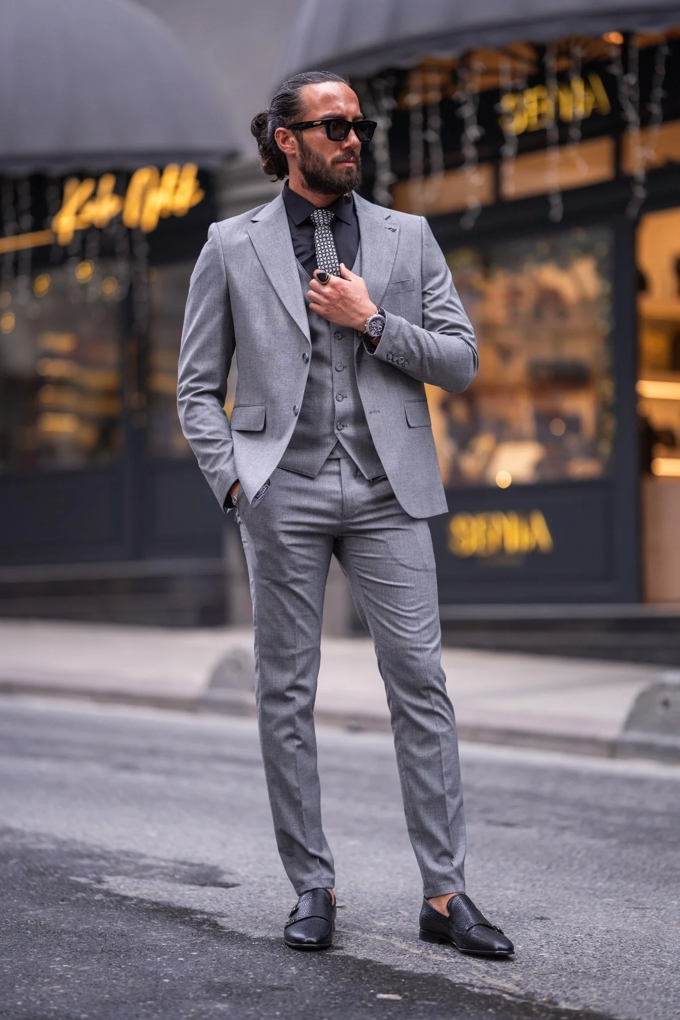 Command attention and exude confidence in our 3-Piece Slim-Fit Gray Suit for weddings, a pinnacle of modern sophistication. With its tailored silhouette and timeless charm, this ensemble effortlessly blends style and substance for a look that speaks volumes.
