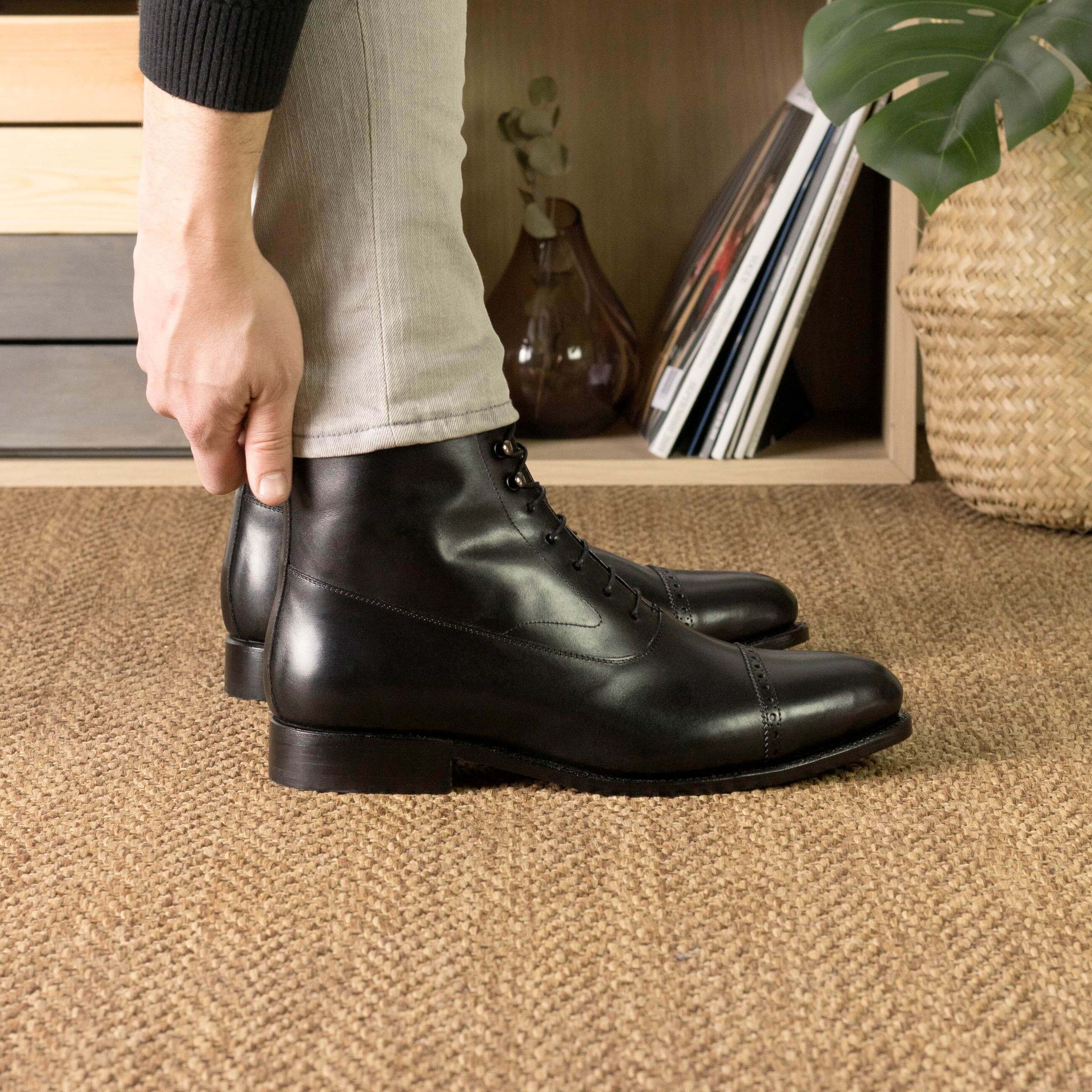 The Kinzie – Black Cap Toe Balmoral Boots with Cognac Sole.
